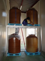 T-50-1000Lを上段に2台、下段に2台、計4台設置可能な「金属製Wラック」。 [奥行]1225mm [幅]2850mm [高]2300mm(甕を載せた場合4000mm) |