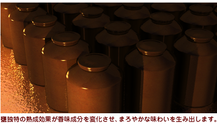 甕独特の熟成効果が香味成分を変化させ、まろやかな味わいを生み出します。